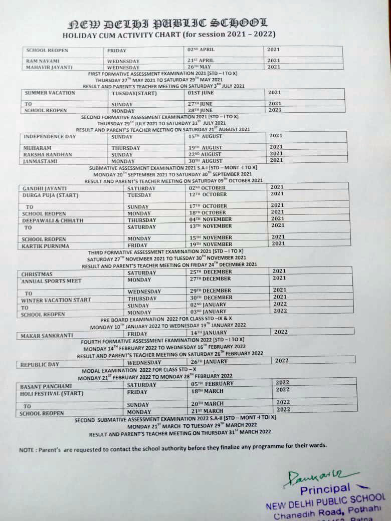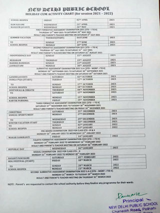 Academic Calender of The School